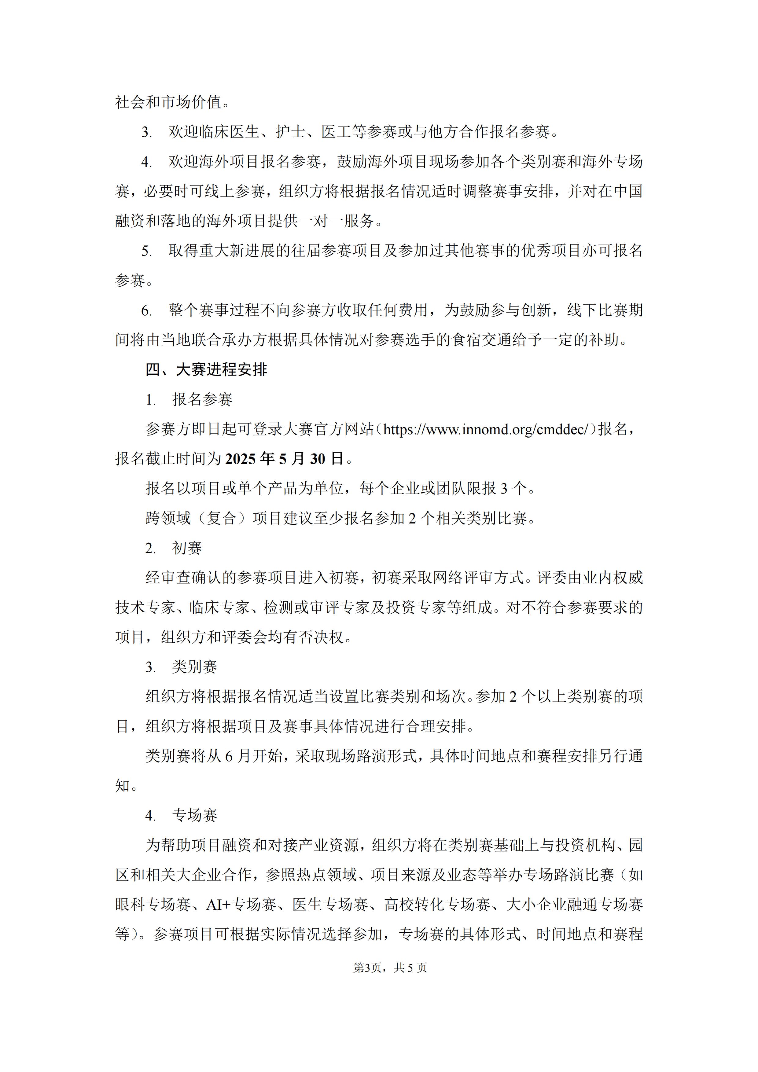 参赛方即日起可登录大赛官方网站(医疗器械创新网网://jczchy.com/cmddec/)报名,报名截止时间为2025年5月30日。